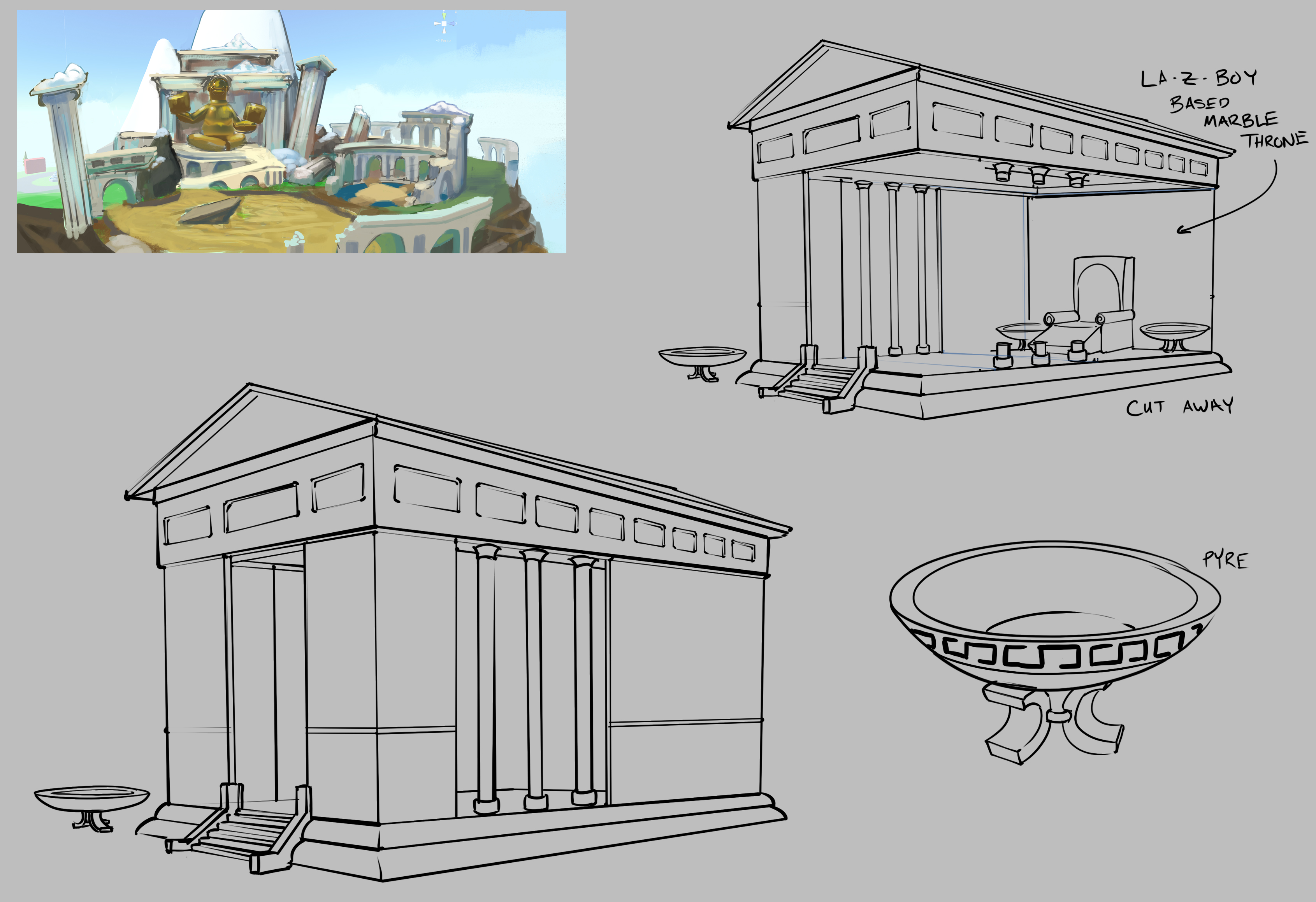 The Golden Ruins area in Totally Reliable Delivery Service was my way of paying homage to the original concept of the game before I joined the Were Five team. I wanted to give the history of the game concept a physical manifestation