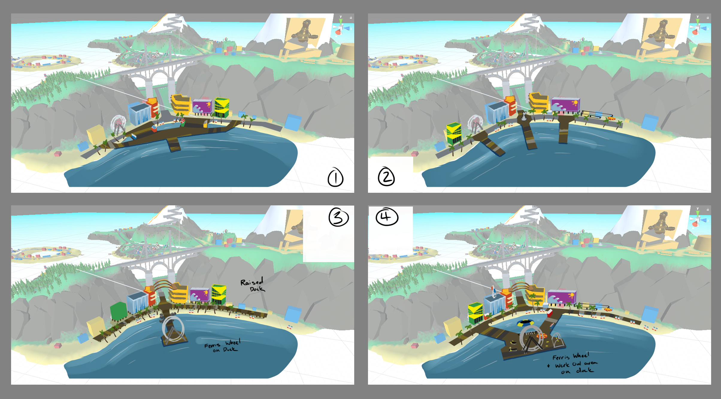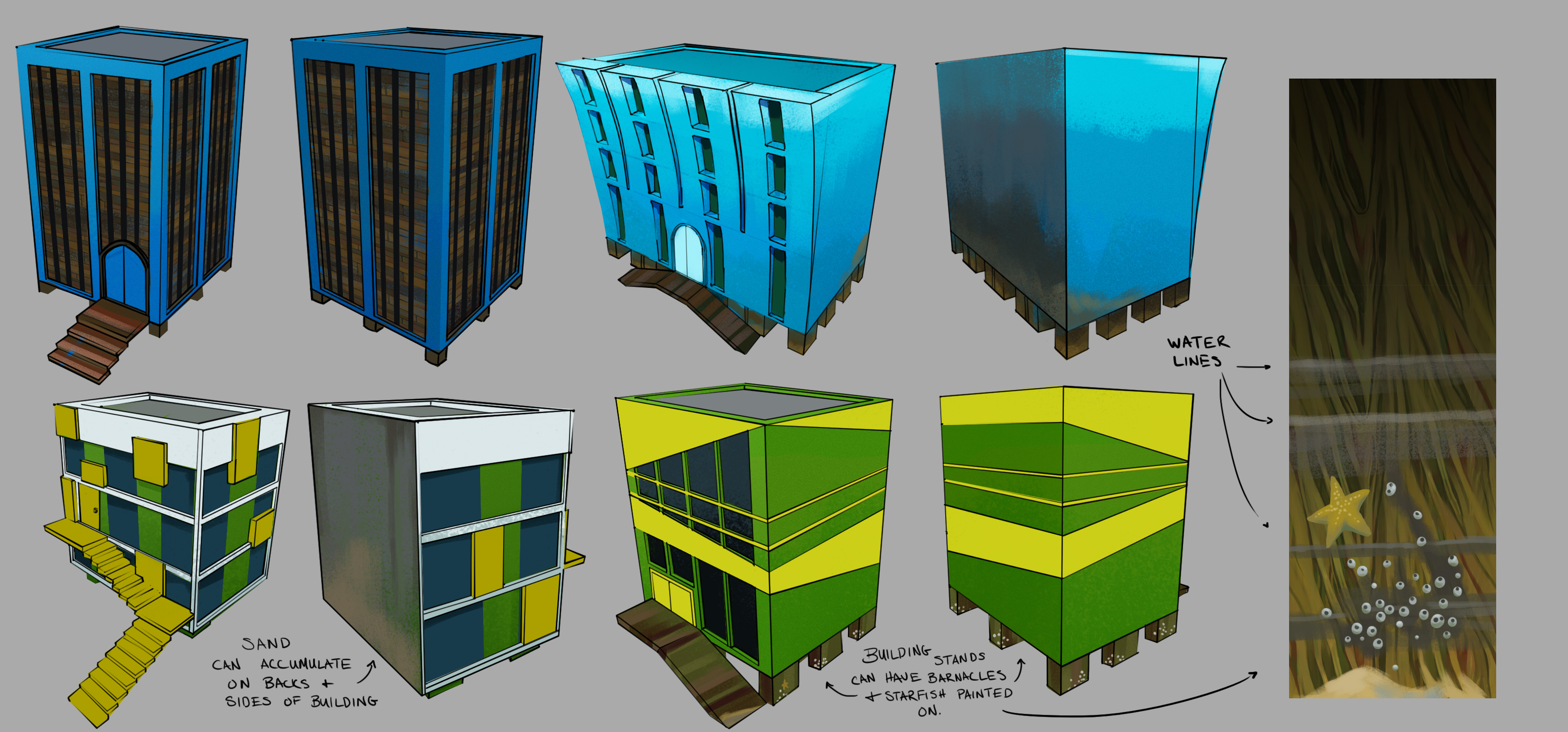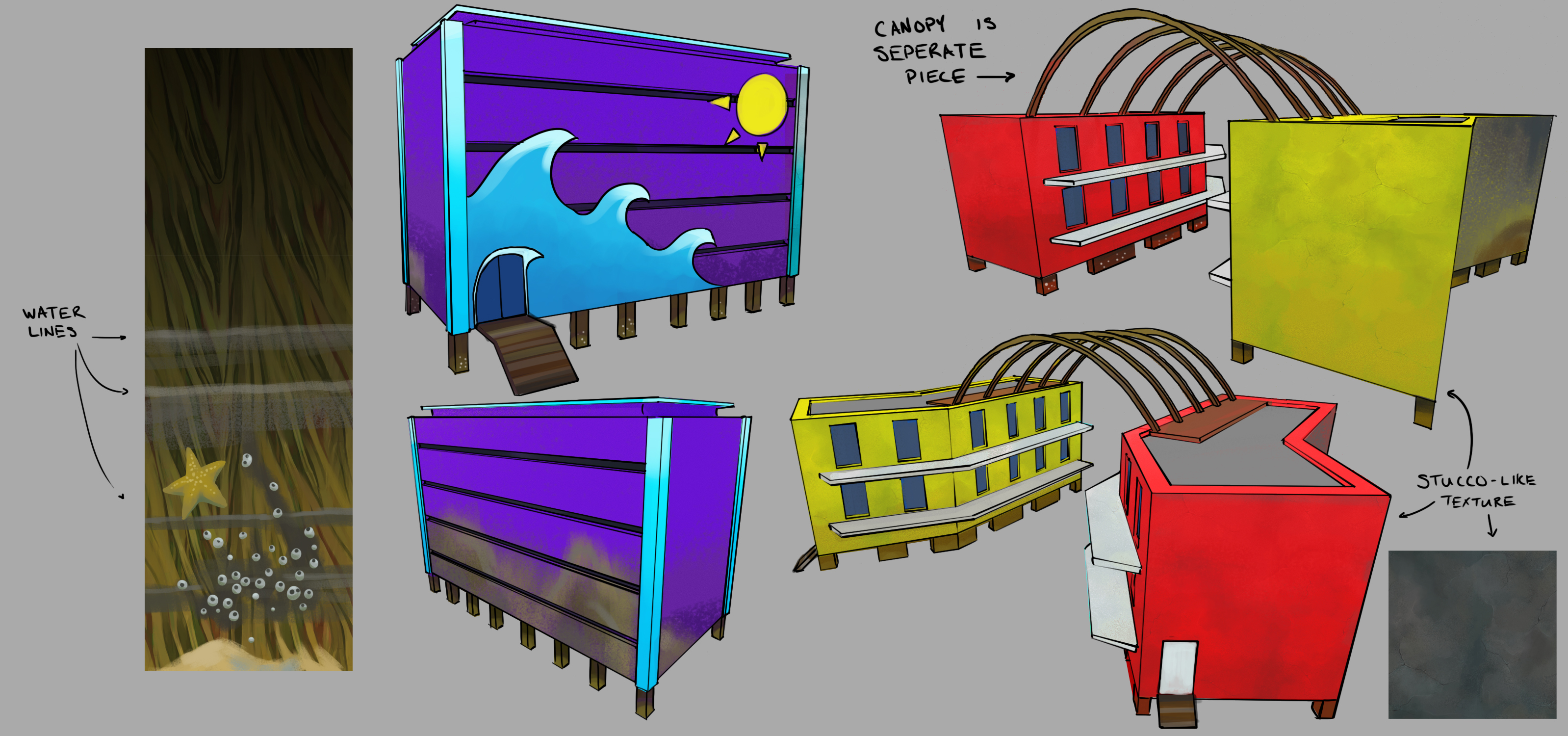 Hustle Beach was one of my favorite areas in Totally Reliable Delivery Service to work on. I based all the hotels off of the crazy 70s hotels that had so much character and tried to add extra character on top of that.