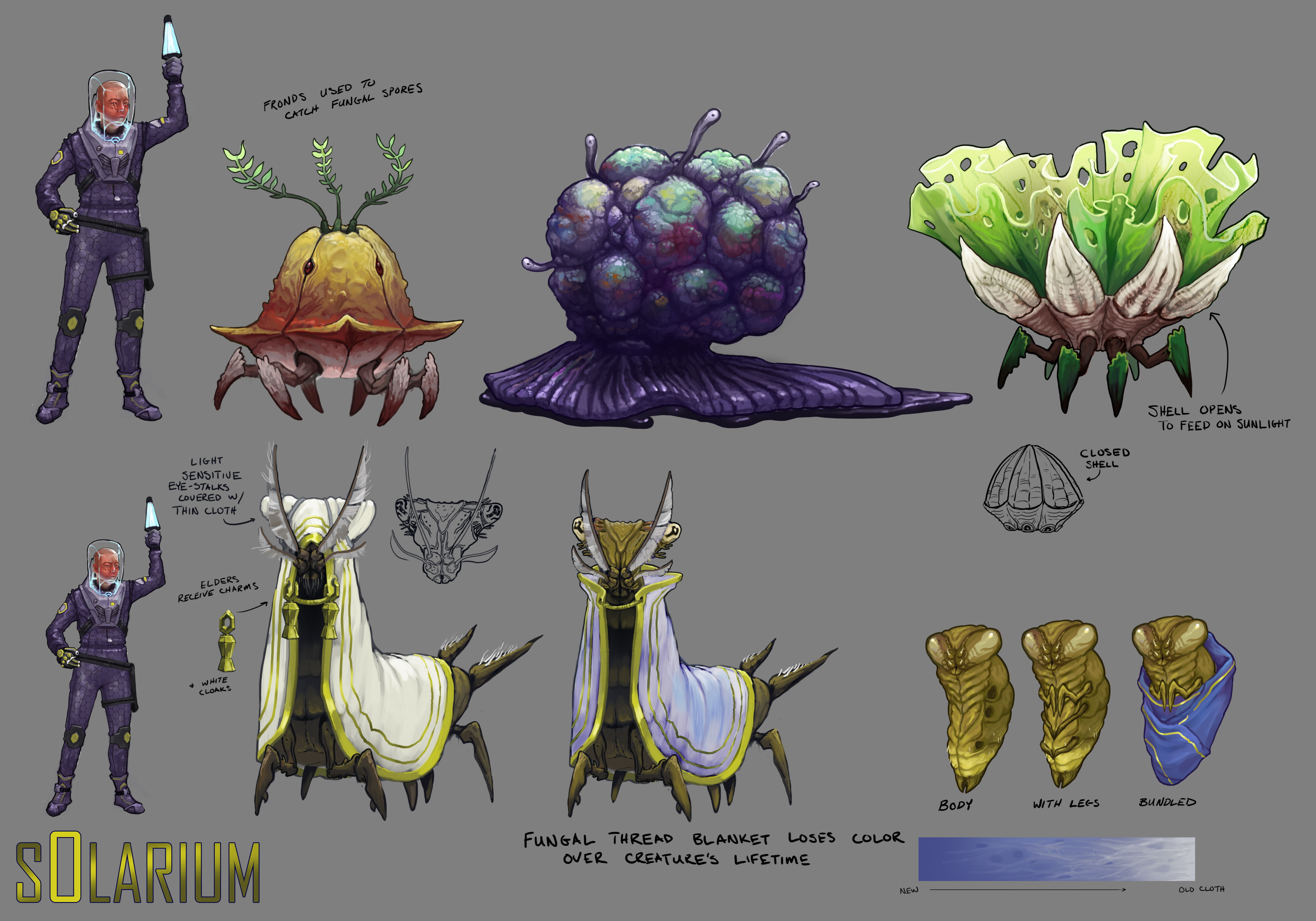 All Solarium aliens are based on terrarium friendly creatures. I spent a while in my sketchbook on this phase before I moved to digital.