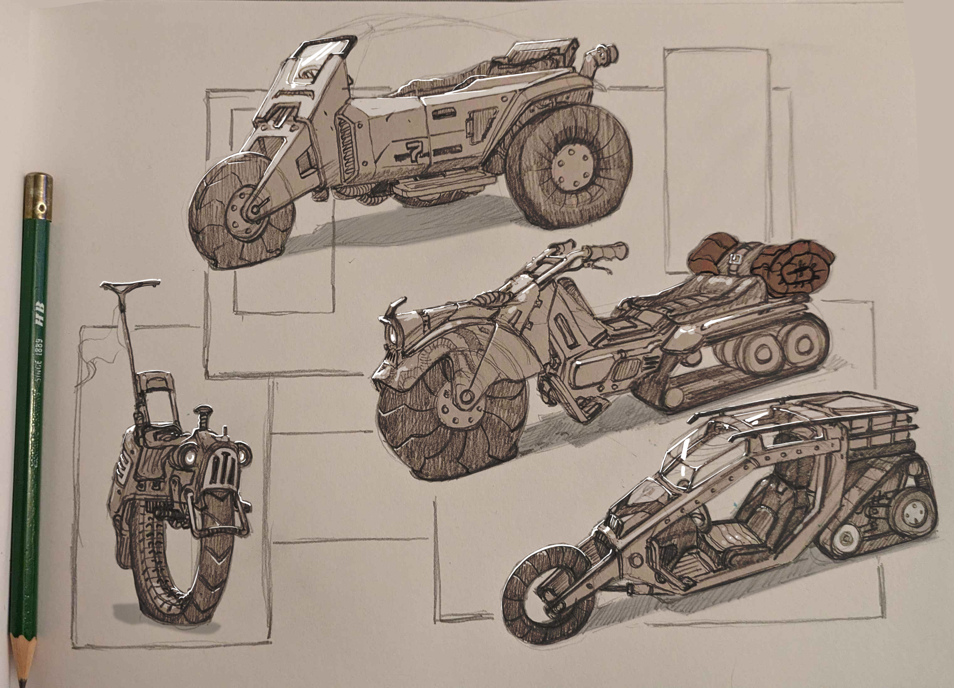 I cleaned up some goofy vehicle sketchbook doodles in photoshop