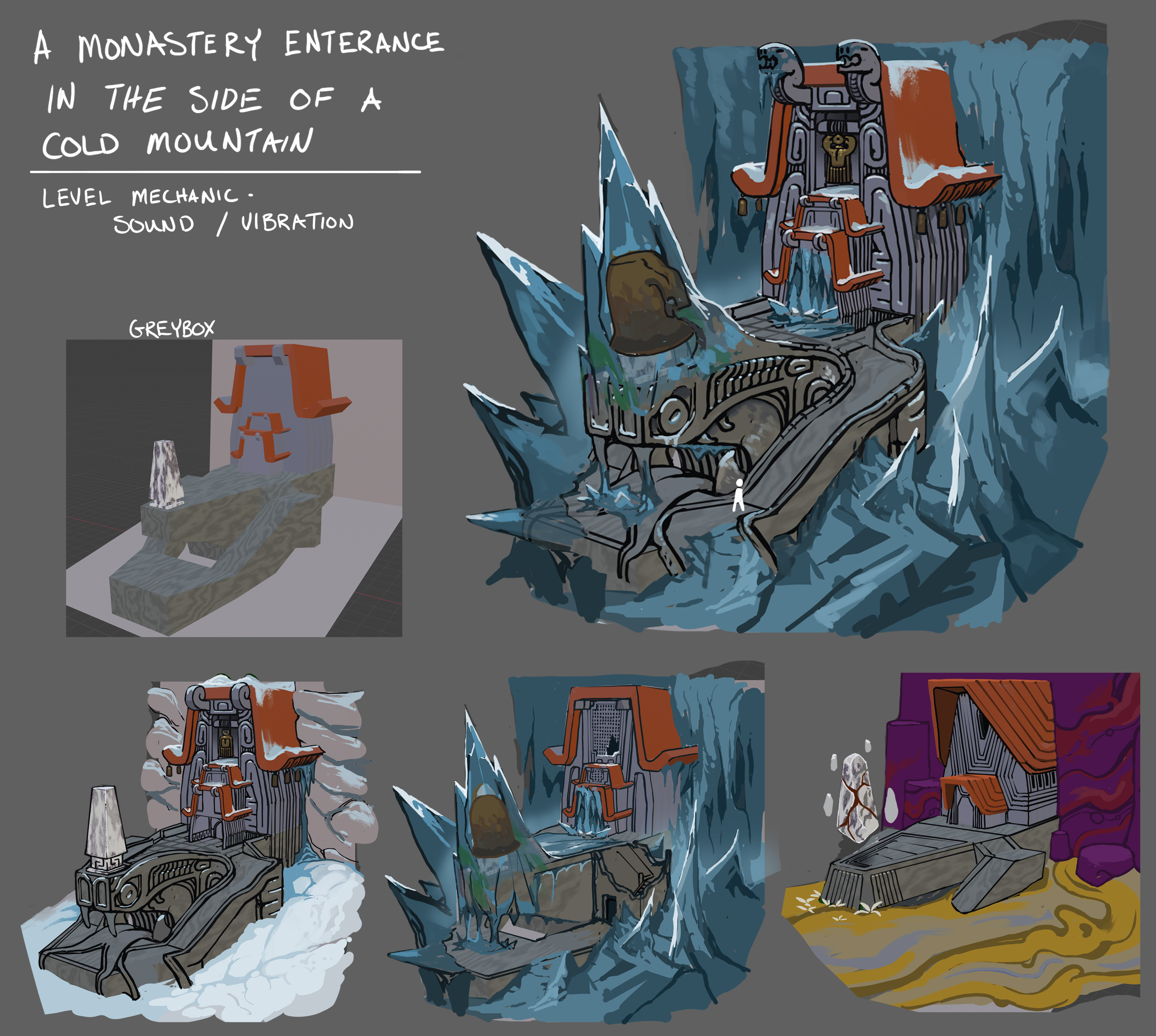 Assignment: A temple or monastery entrance in the side of a cold mountain.