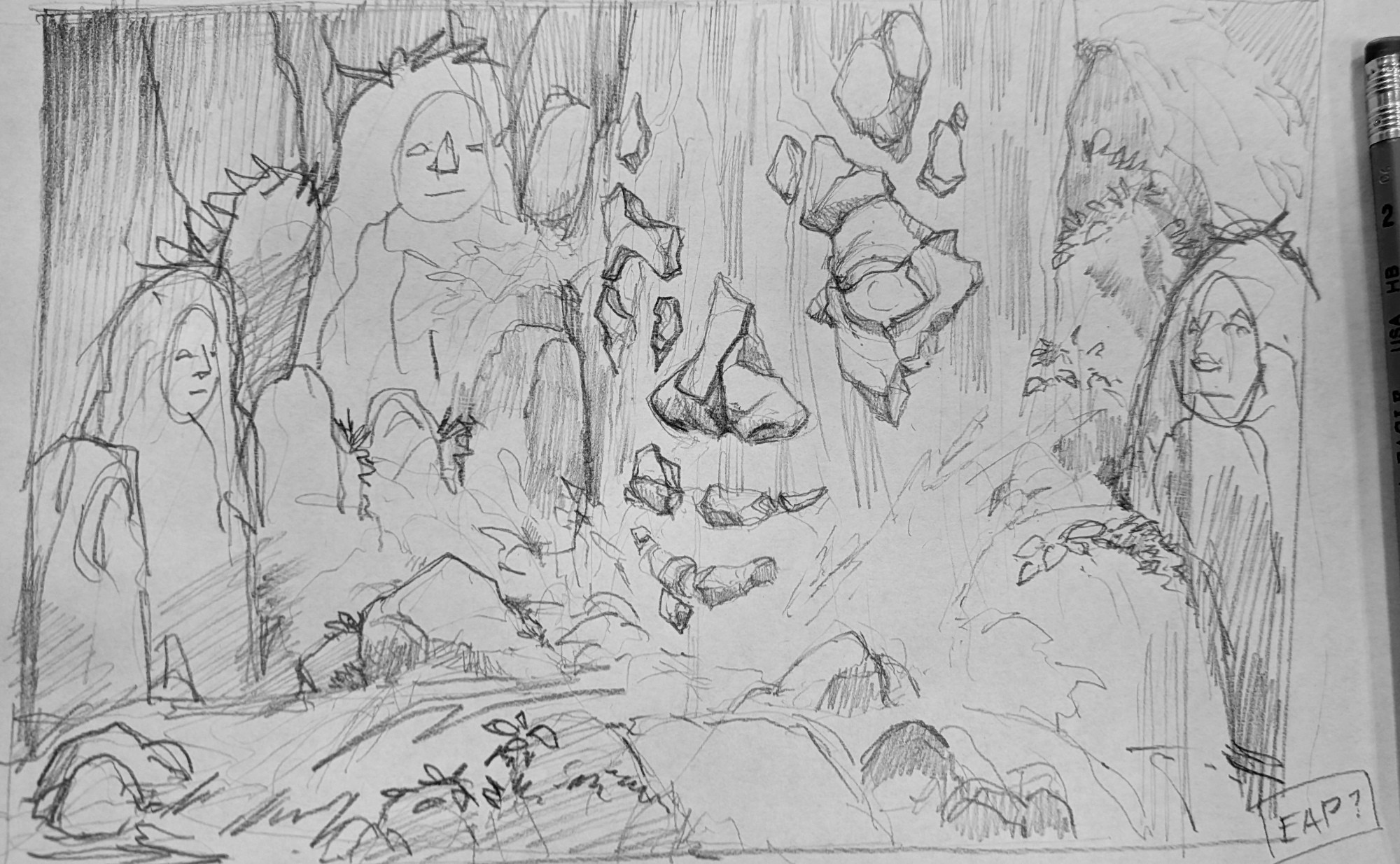 My original sketch. The surrounding design changed, but the original idea is all there.