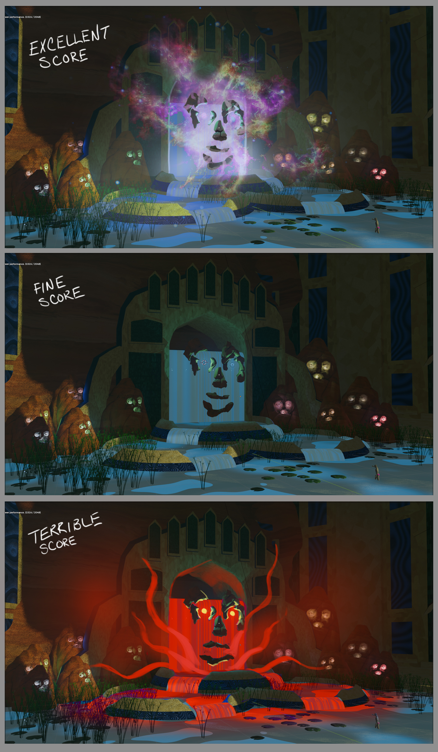 Some quick VFX for responses based on scores and moods.