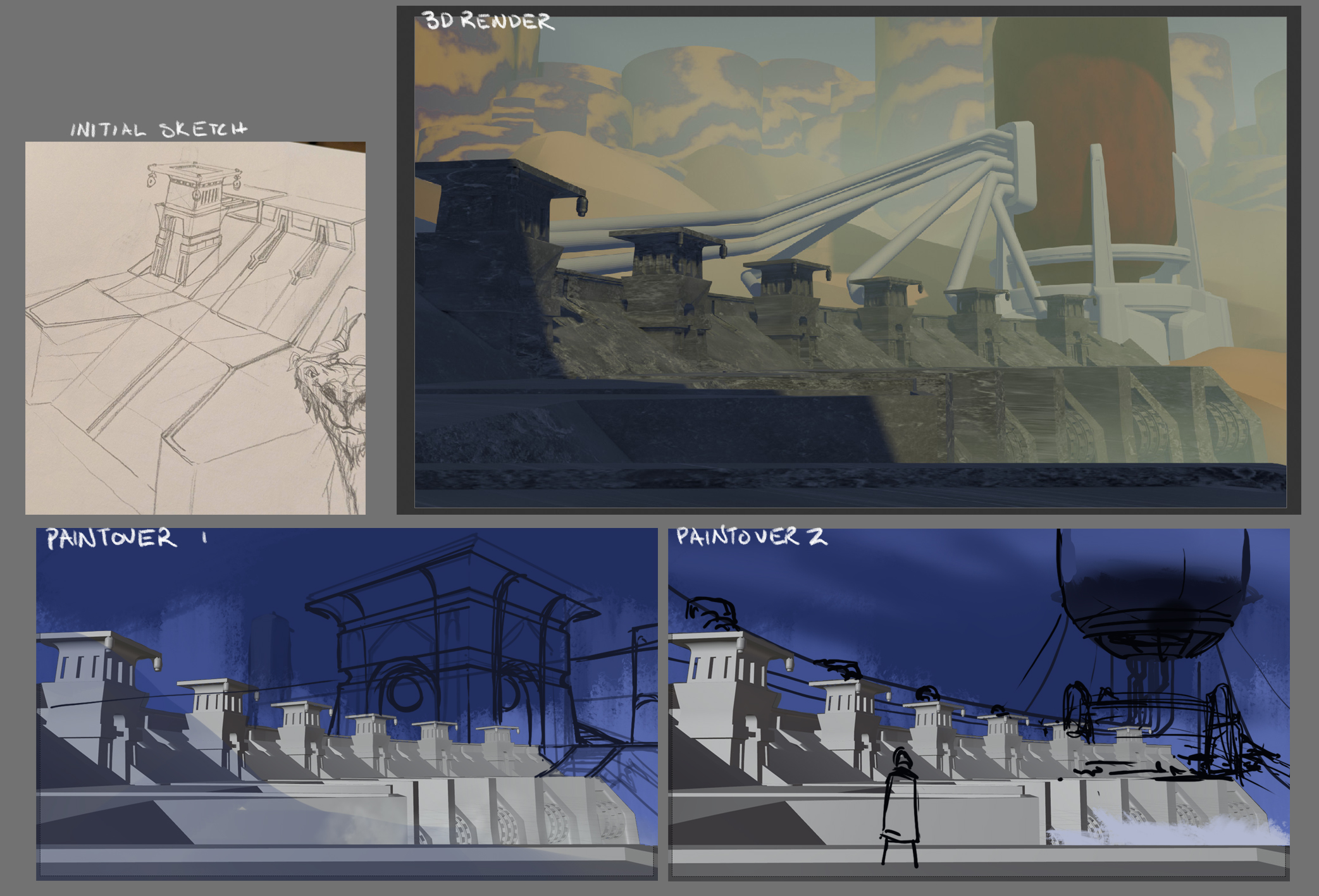 I recently finished a class by Simeon Schaffner. I wanted to build something much more epic and realistic then some of my previous work with the use of blender and photo overlays.